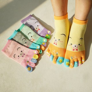 여성 발가락양말 여자 발목 단목 귀여운 곰돌이 캐릭터