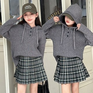 빠빠야네 키즈 주니어 여아 스쿨그레이후드 니트스웨터 체크치마 상하세트 가을겨울
